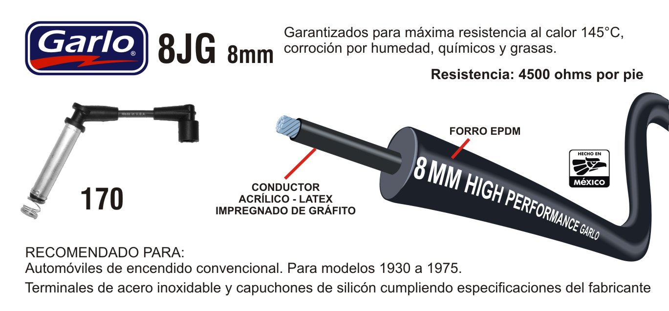 GARLO 8JG-170 CABLES PARA BUJIA CHEVROLET CHEVY L4 1.4 1.6 09-12 CHEVY C2 L4 1.6 04-08 CHEVY MONZA L4 1.4 1.6 09-12 CHEVY WAGON L4 1.4 1.6 09-12 CORSA L4 1.8 02-08 MERIVA L4 1.8 04-08 TORNADO L4 1.8 04-17 4 CABLES