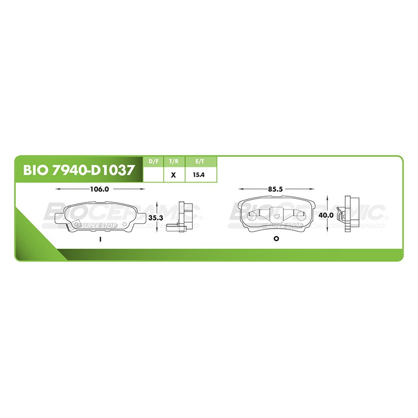 BIO7940-D1037 BALATA FRENO DE DISCO TRASERA DODGE AVENGER (08-09) (11-14) - CALIBER (07-12) - JEEP COMPASS (07-17) - PATRIOT (07-17)