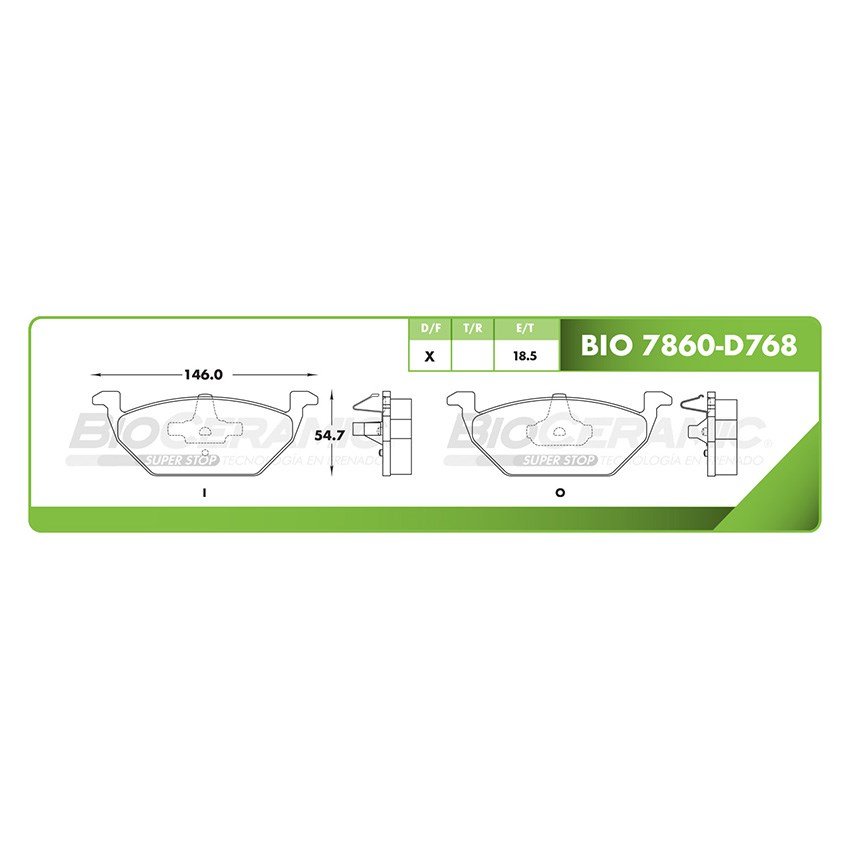 BIO-7860-D768 BALATA FRENO DE DISCO DELANTERA VW BEETLE (98-05) - CROSSFOX (07-13) - GOLF A4 (00-05) - JETTA A4 (99-05) - LUPO (05-09) - POLO (03-19)