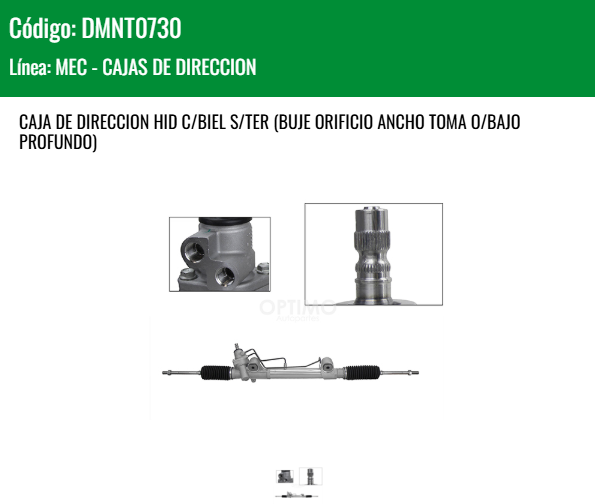 YOKOMITSU DMNT0730 CREMALLERA HIDRAULICA C/BIEL S/TER (BUJE ORIFICIO ANCHO TOMA O/BAJO PROFUNDO) TOYOTA HILUX 2.7L 2WD/4WD 06-15