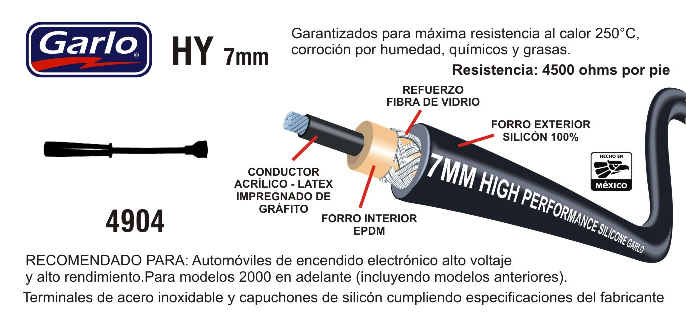 GARLO HY-4904 CABLES PARA BUJIA CHEVROLET TRACKER 4CIL 1.6 SOHC 8V (89-95) - GEO. TRACKER 4CIL 1.6 TBI-8V (89-95) - PONTIAC. SUNRUNNER 4CIL 1.6 (94) - SUZUKI. SAMURAI. 4CIL 1.3 (85-95) - SIDEKICK 4CIL 1.6 SOHC 8VAL (89-95) / 4CIL 1.3 G13A (89)