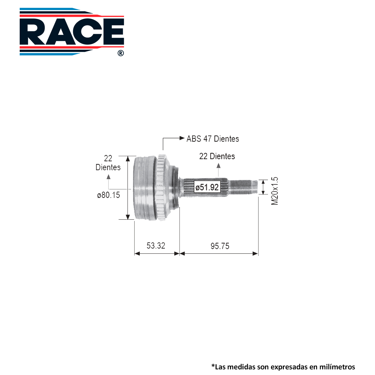 RACE RR-9035 BALERO ESPIGA LADO RUEDA DER/IZQ CHEVROLET AVEO 1.6L 07-18 PONTIAC G3 1.6L 07-09 INT 22D EXT 22D C/ABS SEGURO EXT. TRANSM. AUT-STD