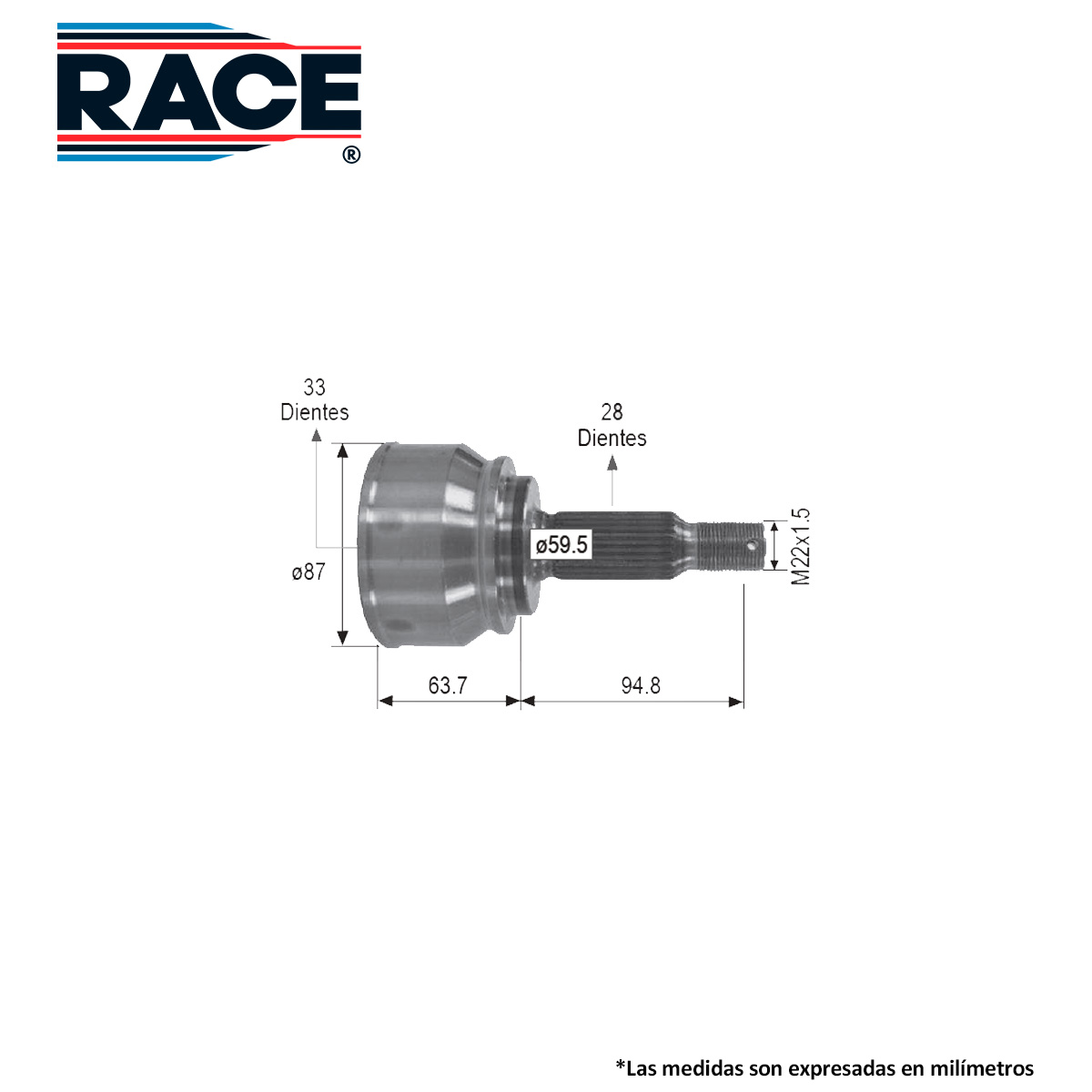 RACE RR-9445 BALERO ESPIGA LADO RUEDA DER/IZQ DODGE CALIBER 2.4L 07-12 JEEP COMPASS PATRIOT 2.4L 07-17 S/ABS INT 33D EXT 28D TRANSM. AUT-STD