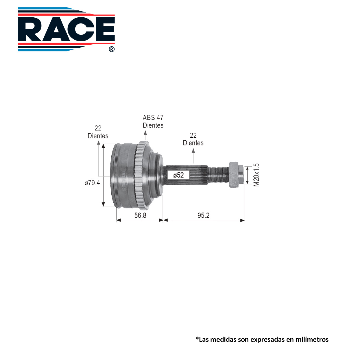 RACE RR-9453 BALERO ESPIGA LADO RUEDA DER/IZQ CHEVROLET AVEO 1.6L C/ABS 07-18 INT 22D EXT 22D SEG. EN MEDIO TRANSM. AUT-STD