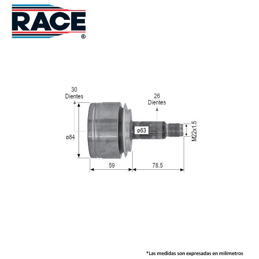 RACE RR-9485 BALERO ESPIGA LADO RUEDA DER/IZQ HONDA ACCORD 2.4L L4 S/ABS 03-07 INT 30D EXT 26D TRANSM. AUT.