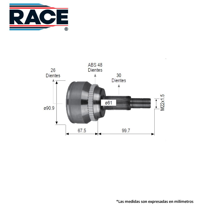 RACE RR-9500 BALERO ESPIGA LADO RUEDA DER/IZQ HYUNDAI GRAND I10 1.2L 1.3L C/ABS 15-20 INT 21D EXT 25D TRANSM. AUT-STD